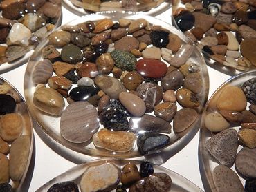 Kathy joined friends at Oxbow to take painting classes from successful local artist Dawn Stafford. She started painting West Michigan landscapes up north, which lead to taking photos of the landscape, which lead to collecting stones and beach glass. As a result she now paints, works in digital media with her photos, and uses the stones and beach glass to produce jewelry.